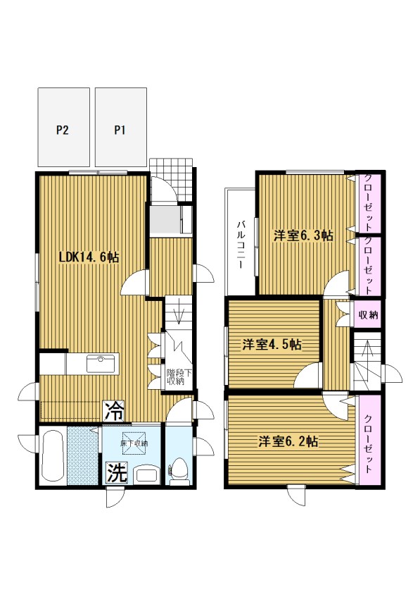 楽器不可 ペット可能 未入居 カウンターキッチン 追い焚き 洗髪洗面化粧台 独立洗面台 シャワー バス・トイレ別 温水洗浄便座 冷房 暖房 エアコン W.INクローゼット 室内洗濯機置き場 TVドアホン プロパンガス 駐車場有 バルコニー *収納たっぷり *足が伸ばせる1坪風呂 *広いリビングダイニング |